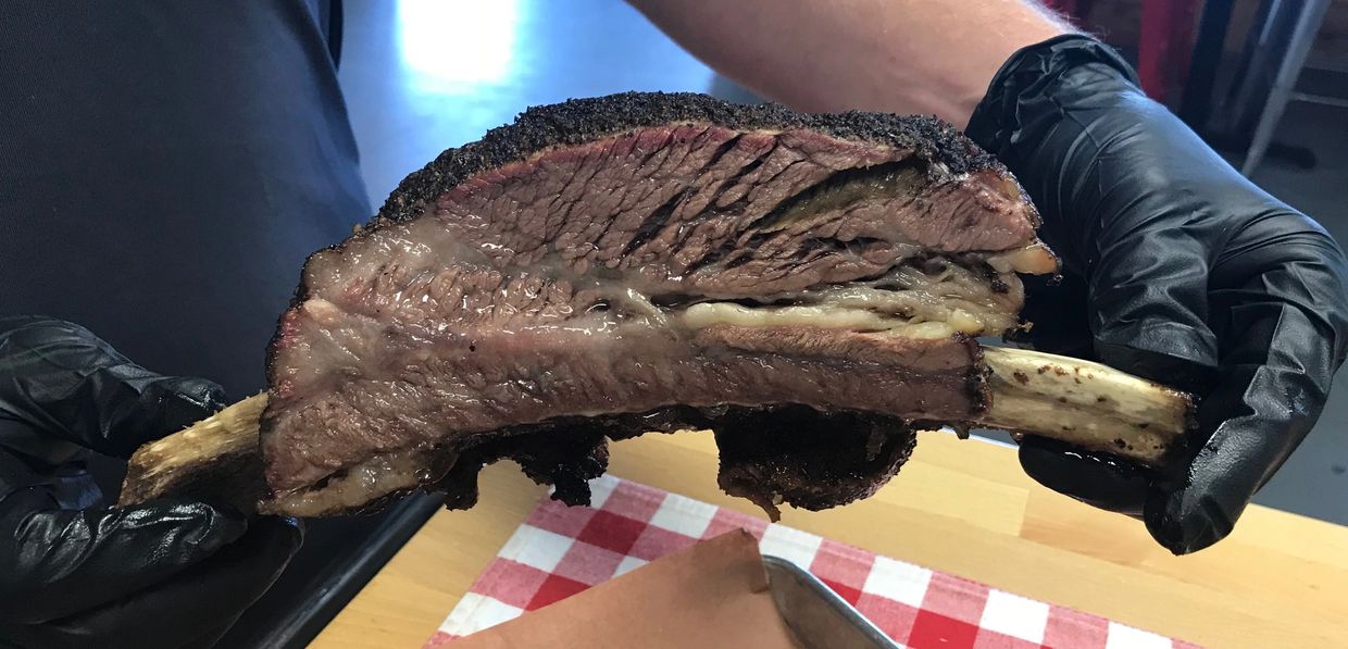 The Beefasaurus Rib: a 9 inch long beef rib with about a pound of juicy, smoky, barbecue heaven, melt in your mouth meat.